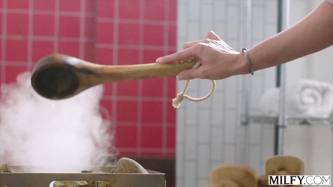 Mom goes into the sauna with a young man... does she want to have sex with him?